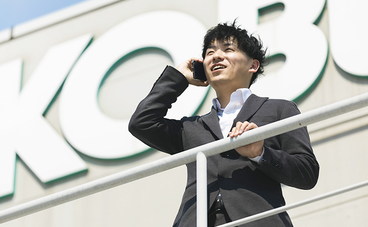 営業職を希望しており、食品、スポーツ用品、不動産など、業種を問わずいろいろな説明会に参加しているうちに出合ったのがコベルコ建機日本でした。建設機械の知識は全くありませんでしたが、知らない世界だからこそ興味が出てきて、調べてみればインフラ整備や災害時を含め社会に欠かせないものであり、商材や金額のスケールの大きさにも魅力を感じました。中でもコベルコは成長途上であることも、やりがいがありそうだと感じました。最終面接までには、人事担当者だけでなく、先輩社員との面談など5回くらい話をする機会があるのですが、そこから感じる社風や社内の雰囲気に好感を持ったのも、入社の決め手になりました。