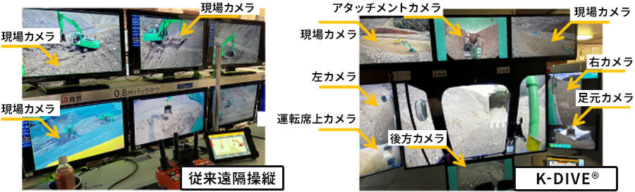 2022年度までラジコン式の従来型遠隔操縦システムを活用。モニタからの情報のみで施工を行うことから、操作性や生産性に課題があがった。こうした背景のもと、生産性向上や工期短縮、コスト低減などを目的に、K-DIVE®導入に至った。