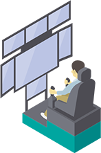 K-DIVE®のコックピットでは、現場の音声に加えて、傾きや操作に影響する微細な振動をモーションシートにフィードバックします。急勾配や岩が多い現場でも重機に搭乗操作しているかのようなリアルな感覚が得られるので、オフィスからでも安全かつスムーズに重機を動かすことができ、実機搭乗時に近い生産性を実現します。