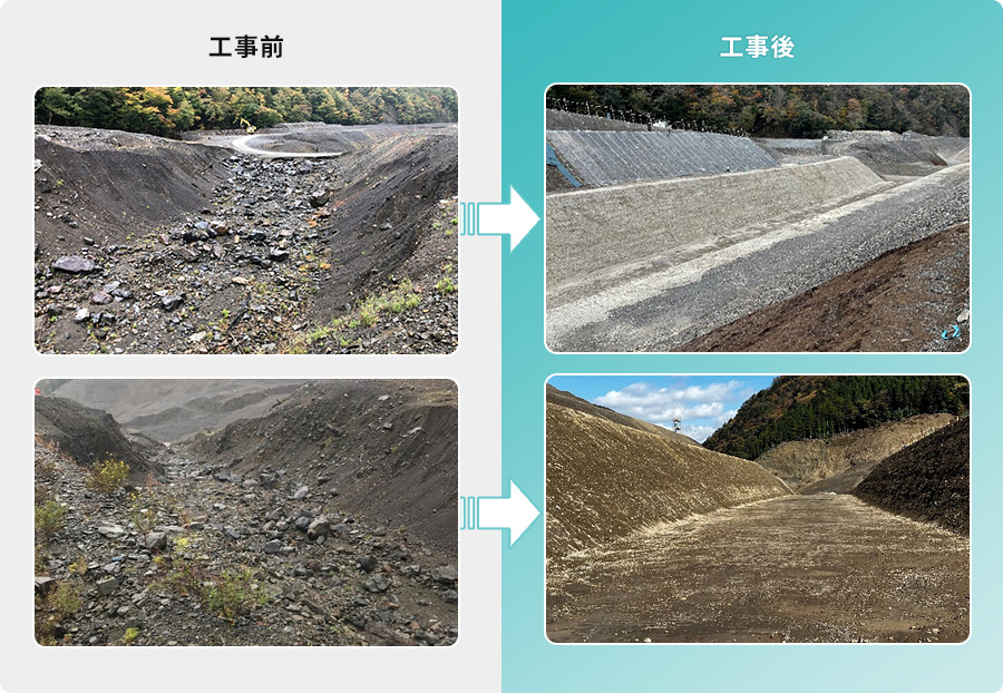 | 施工対象 | 砂防堰堤工事における土砂積込移動及び法面整形 |
