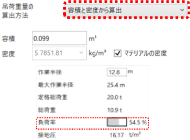 資材重量や負荷率から