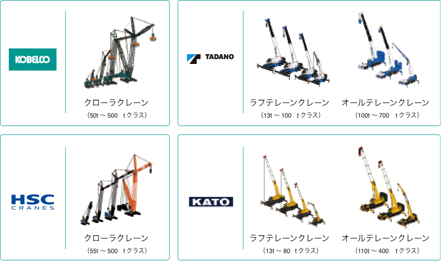 国内クレーンメーカー4社の