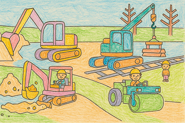 ショベルカーなどの働くクルマを自由に塗って楽しめるコーナーです。事前申込は不要ですので、お気軽にお立ち寄りください。