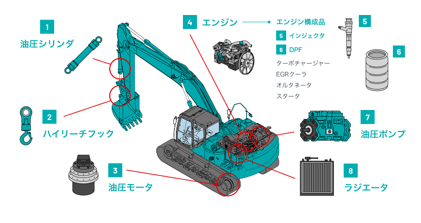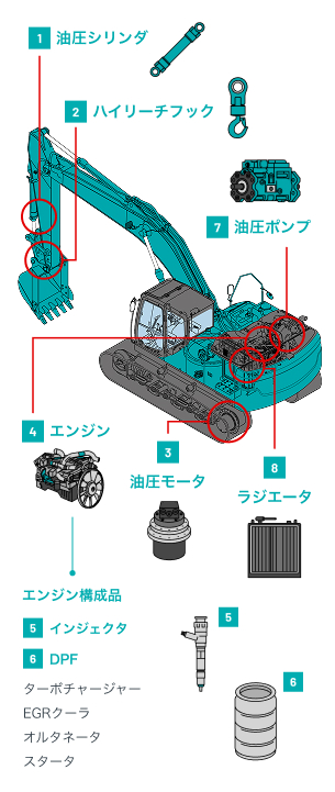 コベルコ建機は2000年より再生部品の事業化に取り組み、資源の有効活用と再利用のサイクルを定着させることで、高品質かつ低価格の実現に挑戦し続けております。